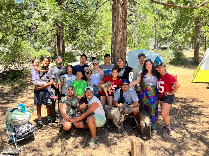 Even though our families live in different cities, we are intentional about scheduling quality time together. Our annual camping trip in honor of Antonio's father is filled with campfires, board games, and laughter, while Christmas traditions include making homemade tamales side by side. Joel's extended family also reunites each summer in Sugar Pine, a small community in the woods near Yosemite, where we sing karaoke, play instruments, and share home cooked meals.