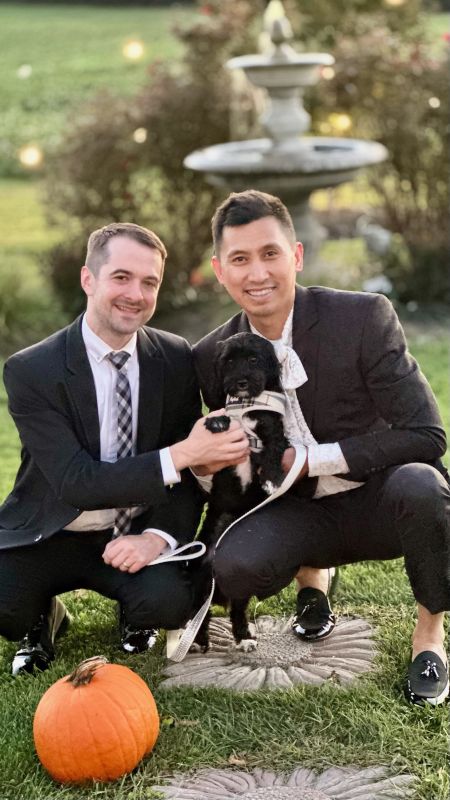 We’ve been married for three years, and our relationship began in a unique way. We first connected at the start of the pandemic, and because Marcus works in healthcare, we had to be careful about meeting early on. There were plenty of dates spent outside, sitting six feet apart, talking for hours and laughing at how strange it all felt. Looking back now, it seems a little silly — but it was truly a gift. That slower pace helped us really get to know each other and build a strong emotional connection before anything else. We moved in together in 2021, and later that year we got engaged in front of close friends. We decided to have our wedding shortly after engagement, since Thomas’s mom was facing terminal cancer. Having her attend the wedding meant everything to us, and being able to share that day with her shaped how we think about family and time, and how important it is to show up for the people we love.