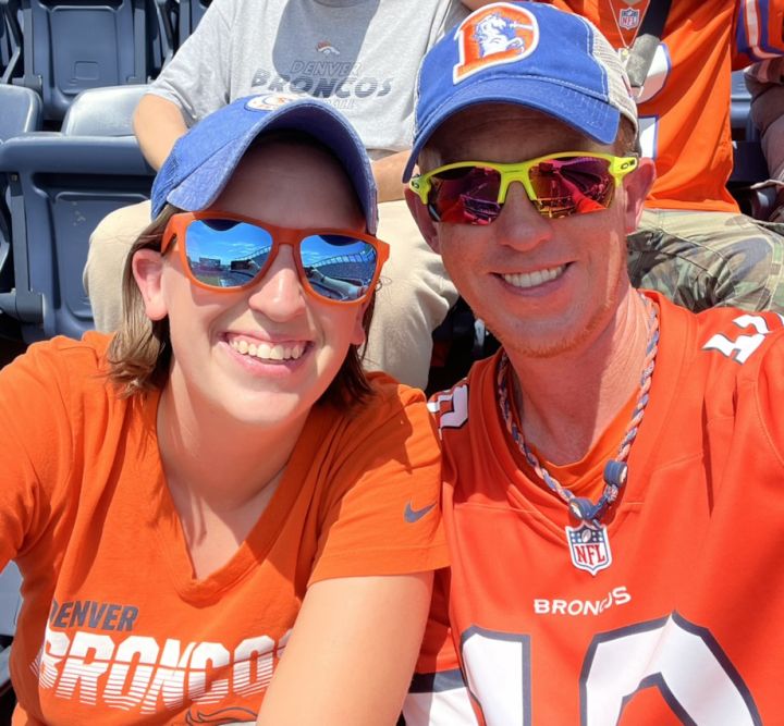 An amazing tradition that combines both our families is attending Denver Broncos games together as one big family. We love cheering and making memories while watching our favorite team.