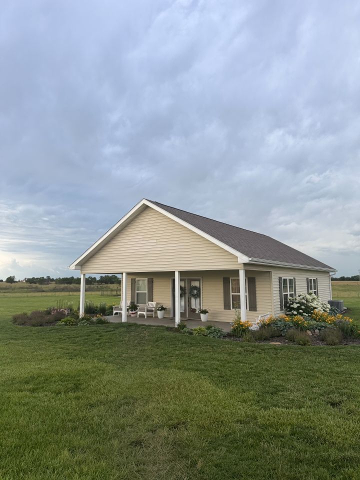 As a temporary residence, we live in a single-story home on five acres of land that overlooks where our future permanent home will be built. The most beautiful sunsets and sunrises can be seen from our windows. We love sitting on the couch in front of the fireplace watching sports or cooking outside in the outdoor kitchen. However, our favorite room in the home is the nursery which Kaitlyn has already put together. Kaitlyn's brother plans to build nearby and raise his young family alongside ours, with grandma's home overlooking us in the distance.